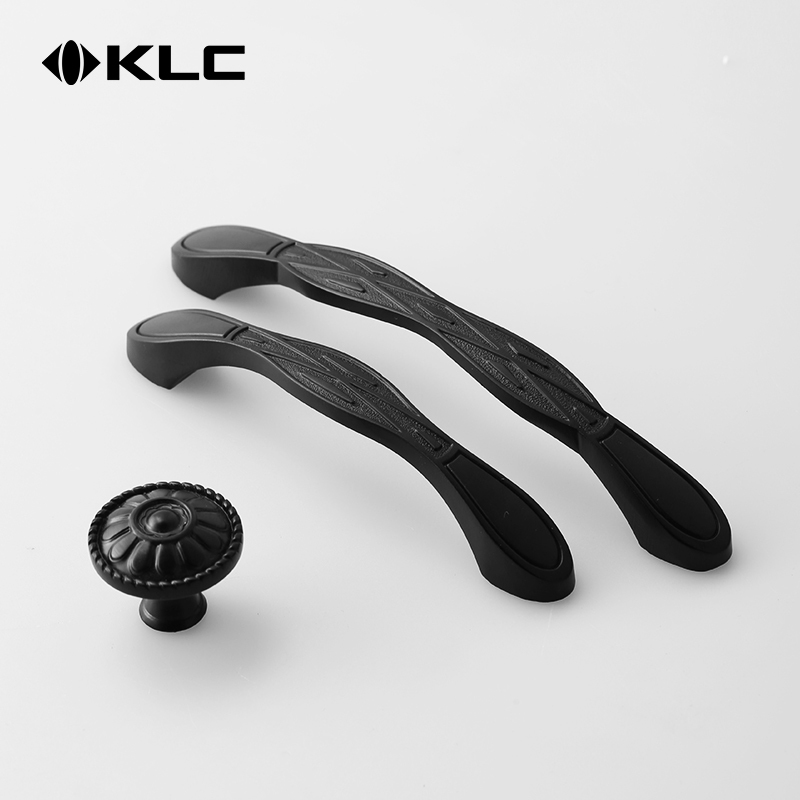 KLC European black wardrobe door drawer small handle Round kitchen cabinet door handle button handle