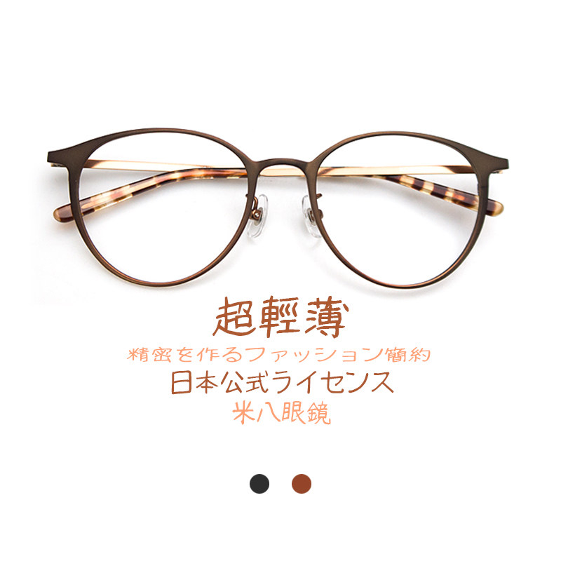 Rice eight Japanese vintage black-rimmed glasses flat round square face can be equipped with large frame myopia glasses female finished men's super light