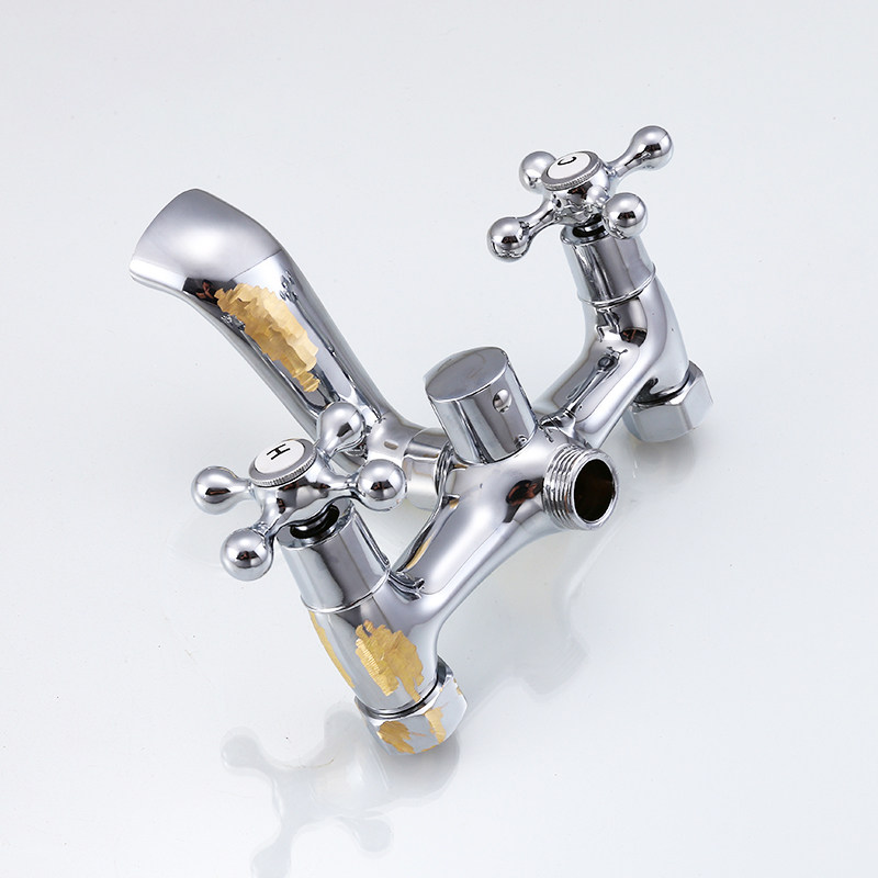 All-copper shower faucet double handle double control bathtub faucet under the water outlet concealed hot and cold mixing valve bath shower set