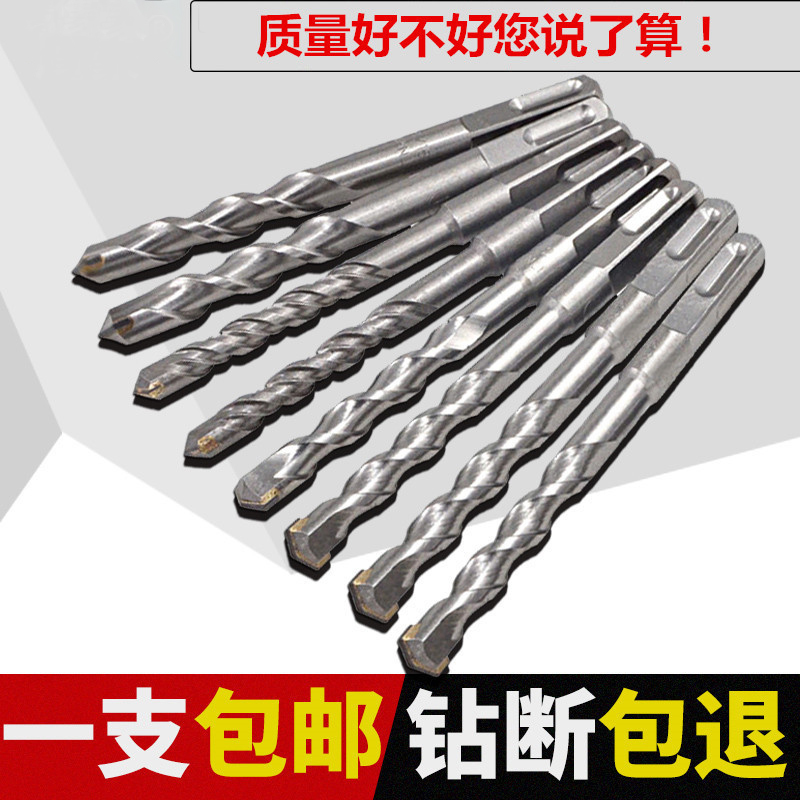 Extended impact rotary hammer drill bit Round handle two pits two grooves square handle Rotary head Concrete wall construction drilling drill