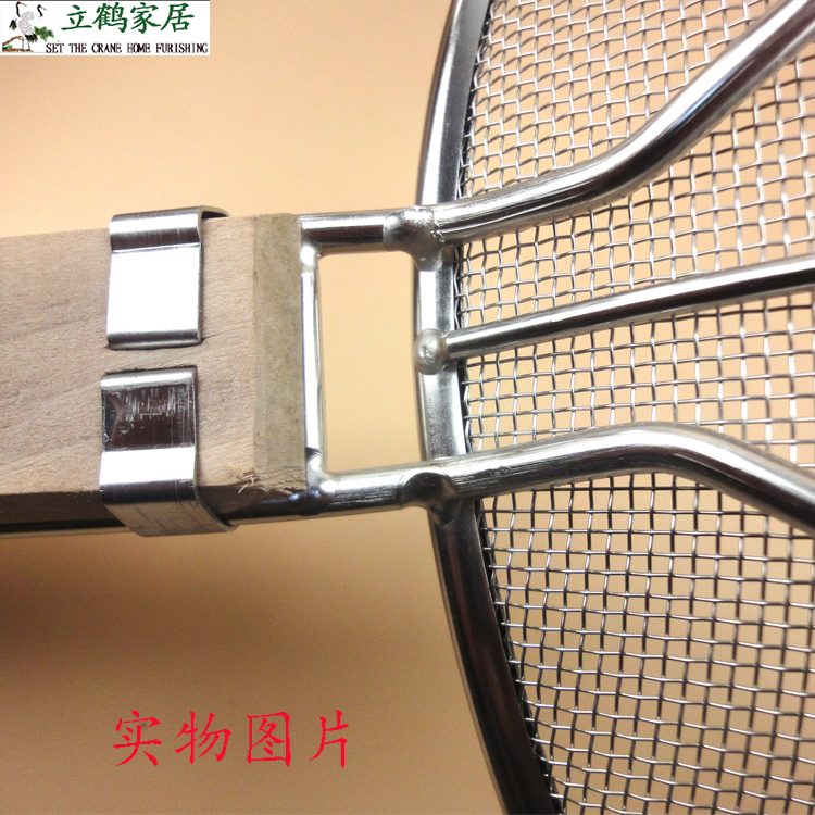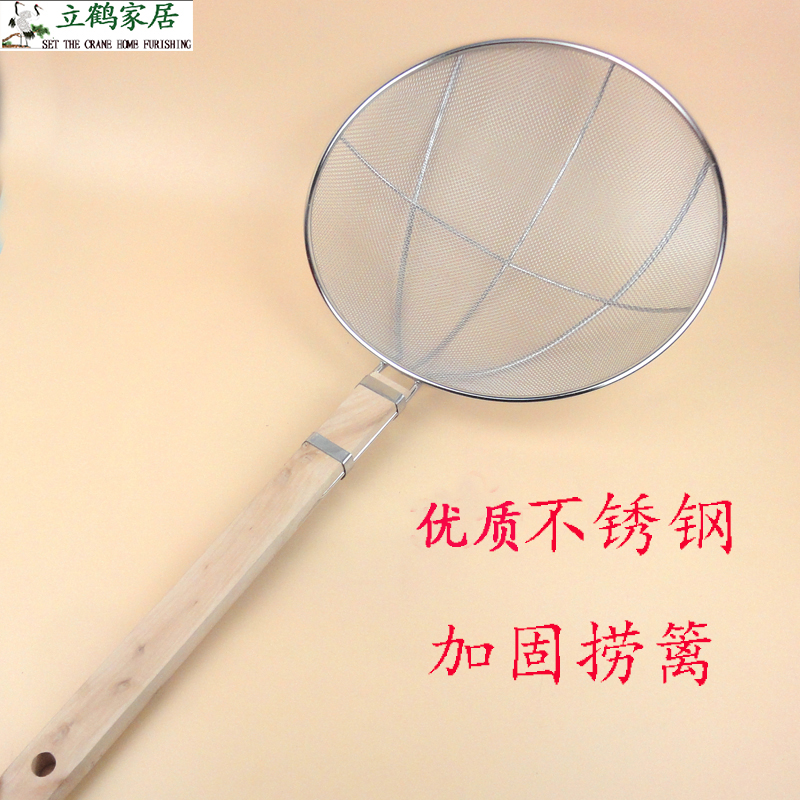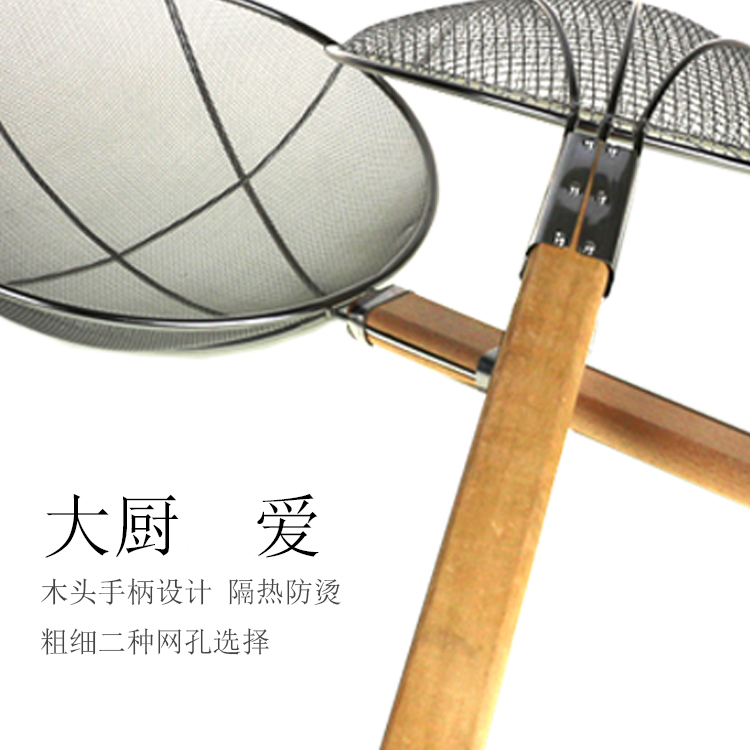 Large colander wooden handle fishing fence Stainless steel fan leakage fence Encrypted fishing surface oil leakage spoon wooden line leakage net kitchen