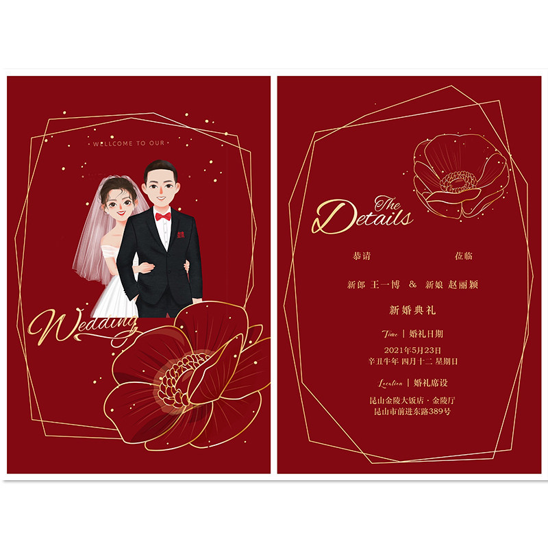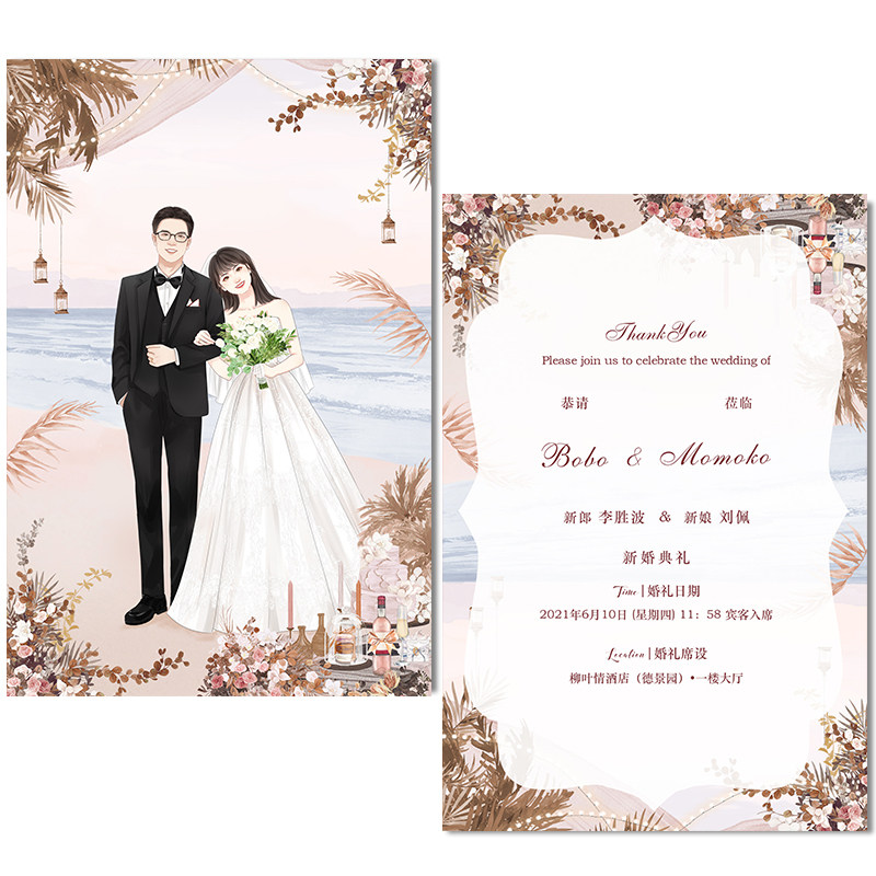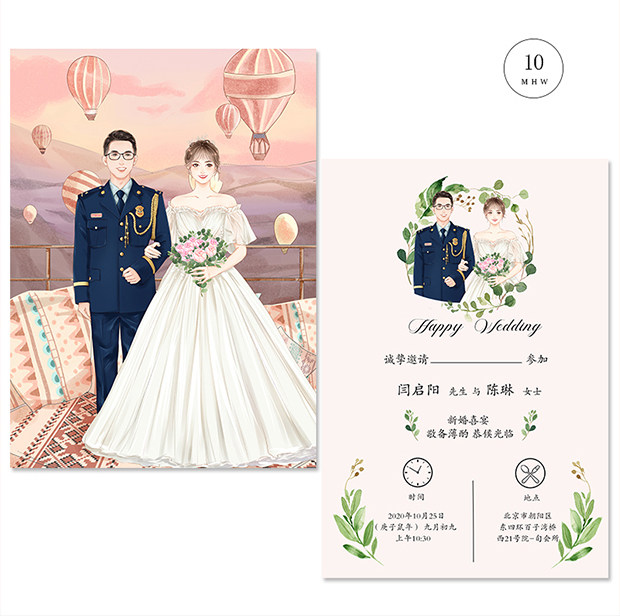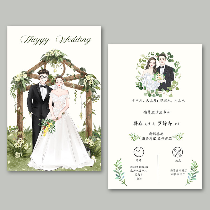 Hand-drawn wedding invitation character avatar cartoon custom high-end wedding photo handdrawn invitation to illustration design