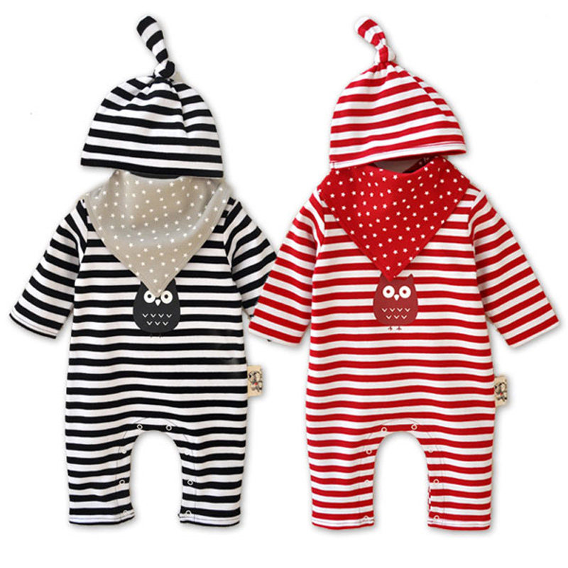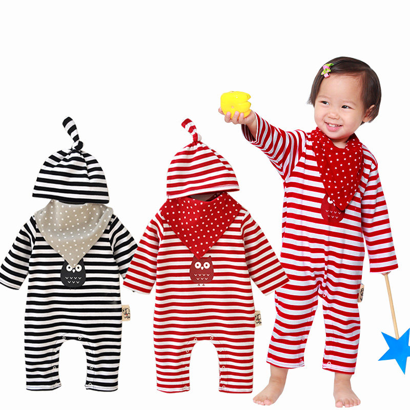 Spring and autumn and winter striped baby jumpsuit pure cotton male baby harem three-piece set female climbing clothes out clothes spring tide