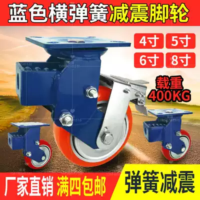 Blue horizontal spring shock-absorbing caster 4 inch 5 inch 6 inch 8 inch universal wheel iron core polyurethane car tractor wheel