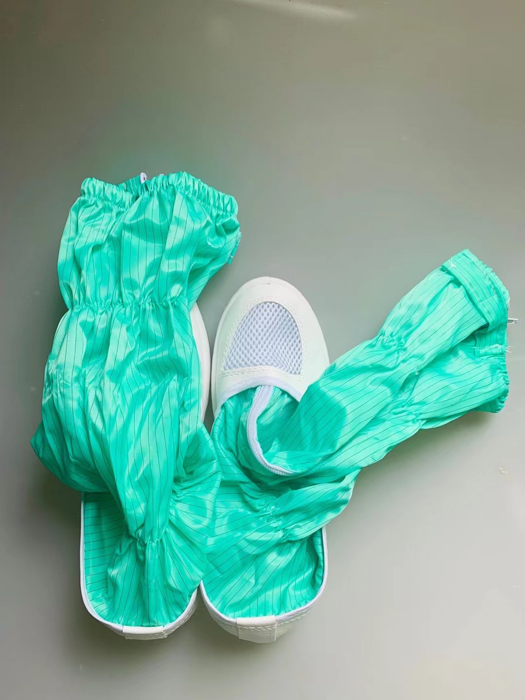 Manufacturer produces antistatic leather high cylinder shoes pvc bottom mesh surface green stripe high cylinder shoes no dust room working shoes