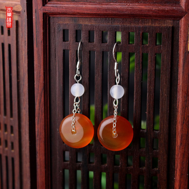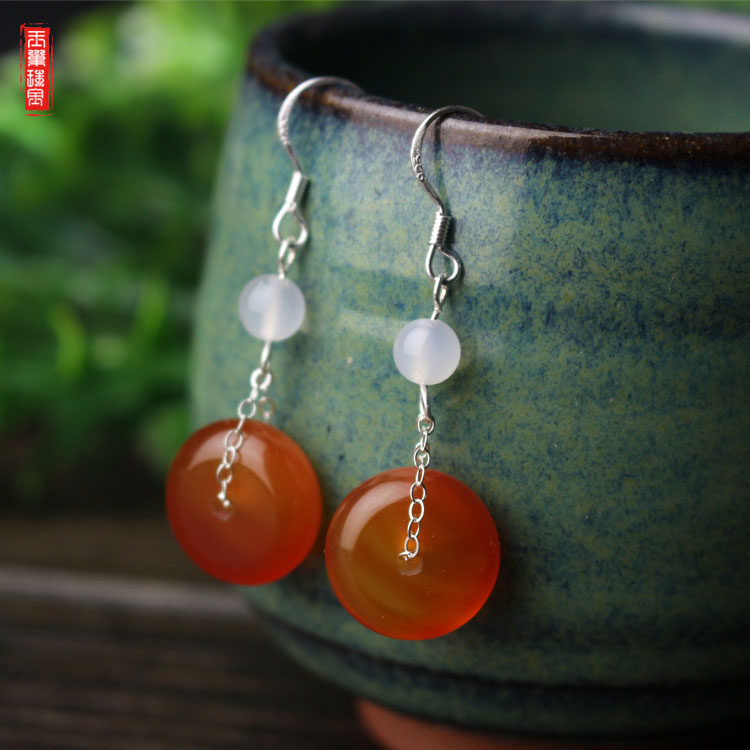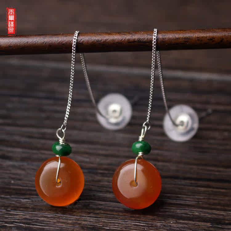 Red Manau jade earrings Long version of the ear necklace original ear decoration Ping An auspicious earbuds S925 silver Fashion Ornaments 100 lap