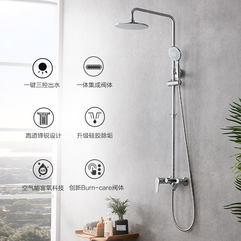 JOMOO Nine Pastoral Descaling Shower Air Energy Pressurized Shower Head Combined Silicone Shower Shower Nozzle Faucet Suit 36457