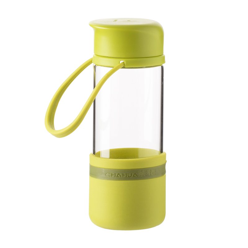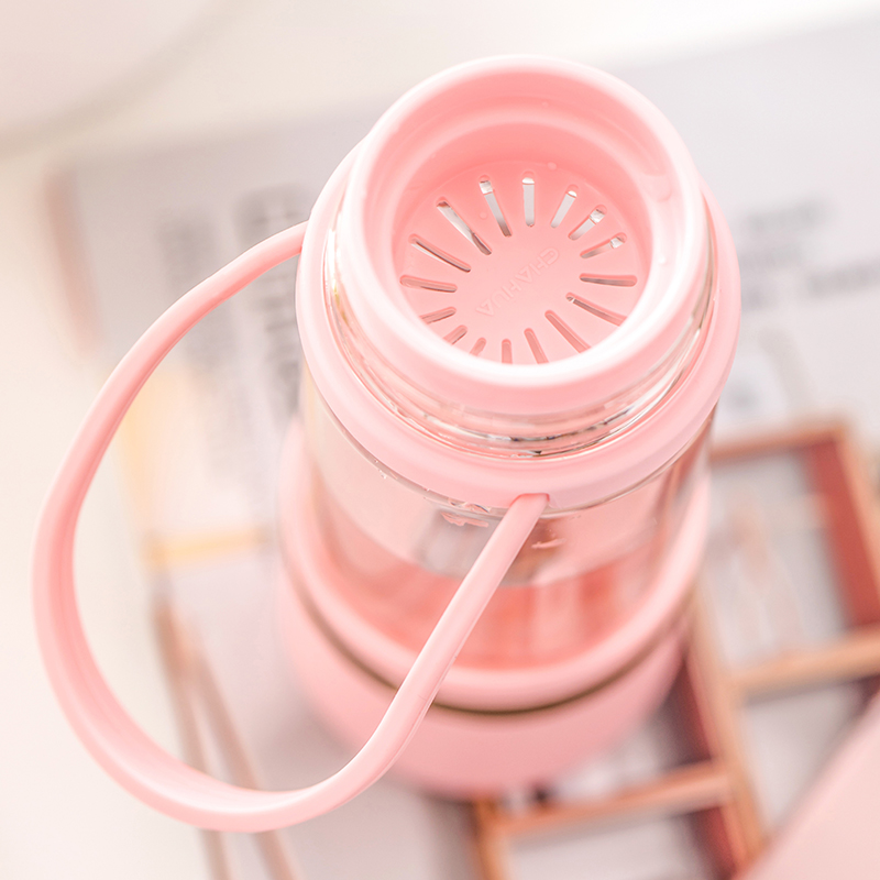 Tea flower stylish heat resistant glass mug large and creative plastic anti-slip portable sports water glass filtering through tea cup