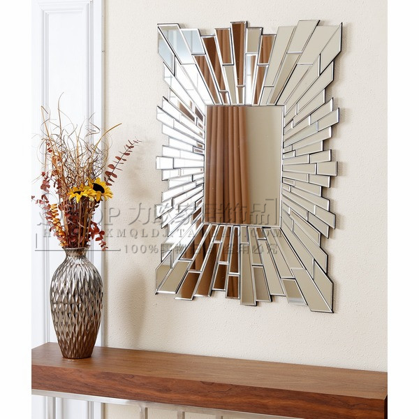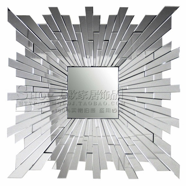European and American extravagant mirror glass hanging mirror bathroom decoration mirror background wall hanging mirror square makeup mirror Genguan mirror set to do