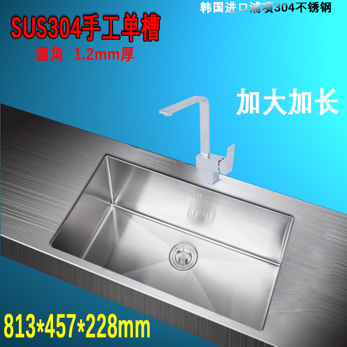 Household handmade sink kitchen thickened 304 stainless steel washbasin single sink lengthened small rounded under-counter washbasin