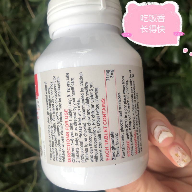 Australian Bioisland infant zinc supplements chewable tablets 120 grains to improve appetite small bear zinc flake