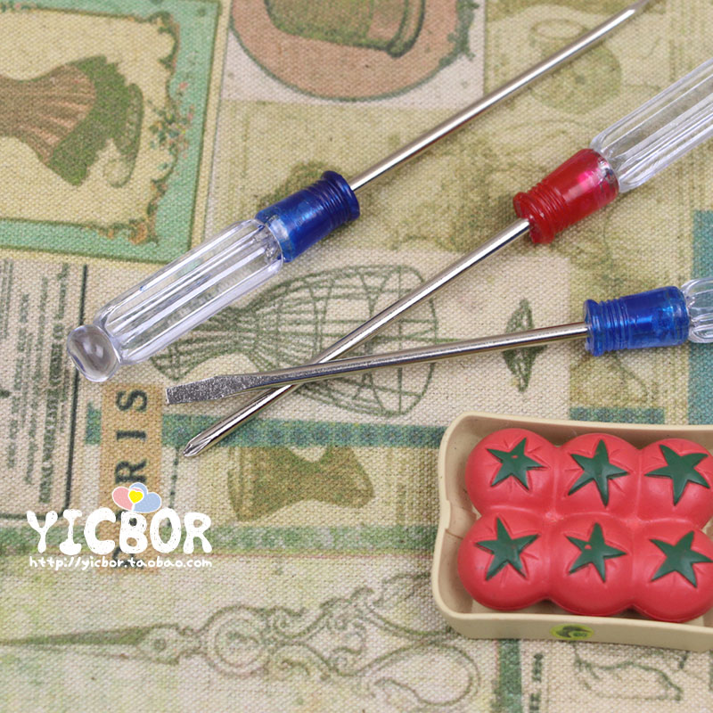 1 transparent flat-blade screwdriver 1 transparent Phillips screwdriver 1 black small Phillips screwdriver