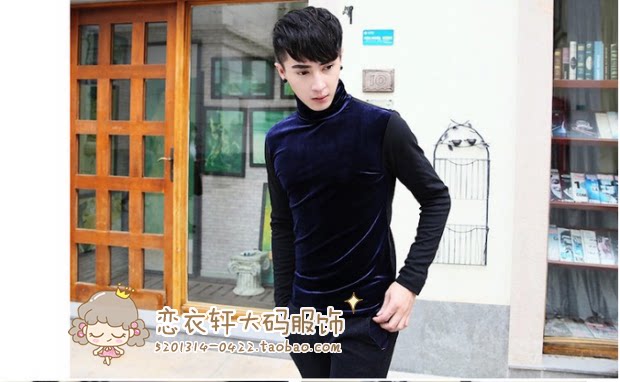Spring men's wear plus large gold velvet resilience repair slim, long-sleeve T-shirt