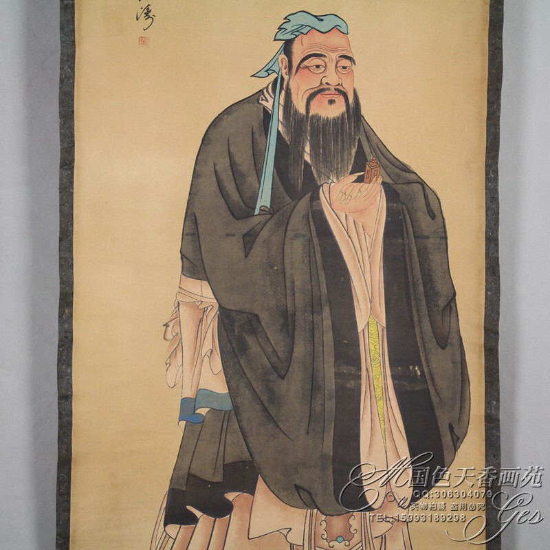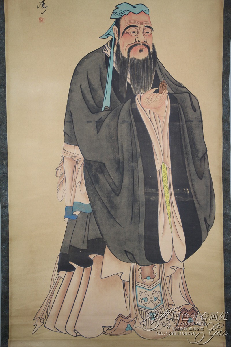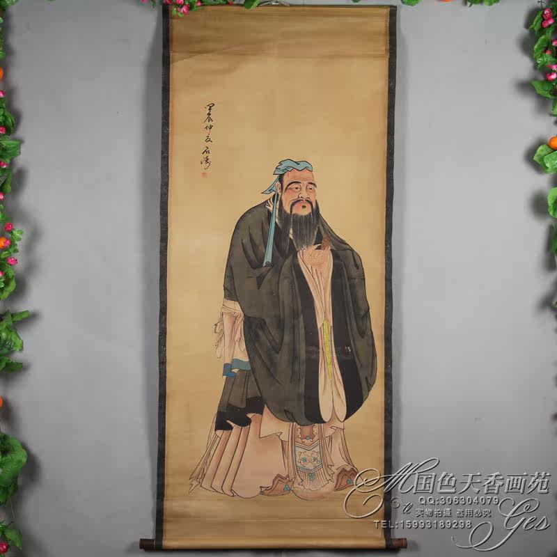 Promotion old figure painting calligraphy painting Mural wall painting Middle hall painting Cowhide rice paper painting core Living room decoration hanging painting Confucius