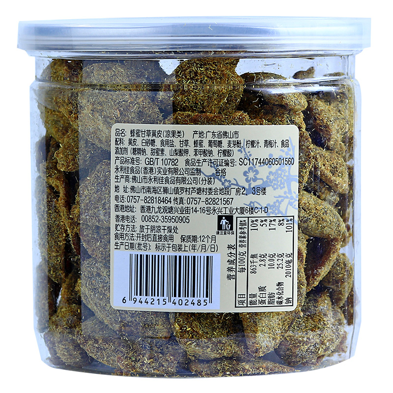 Hong Kong Sweet House Honey Licorice Yellow Peel Fruit 2 bottle x200g canned fruit dried salty sweet snack snack canned