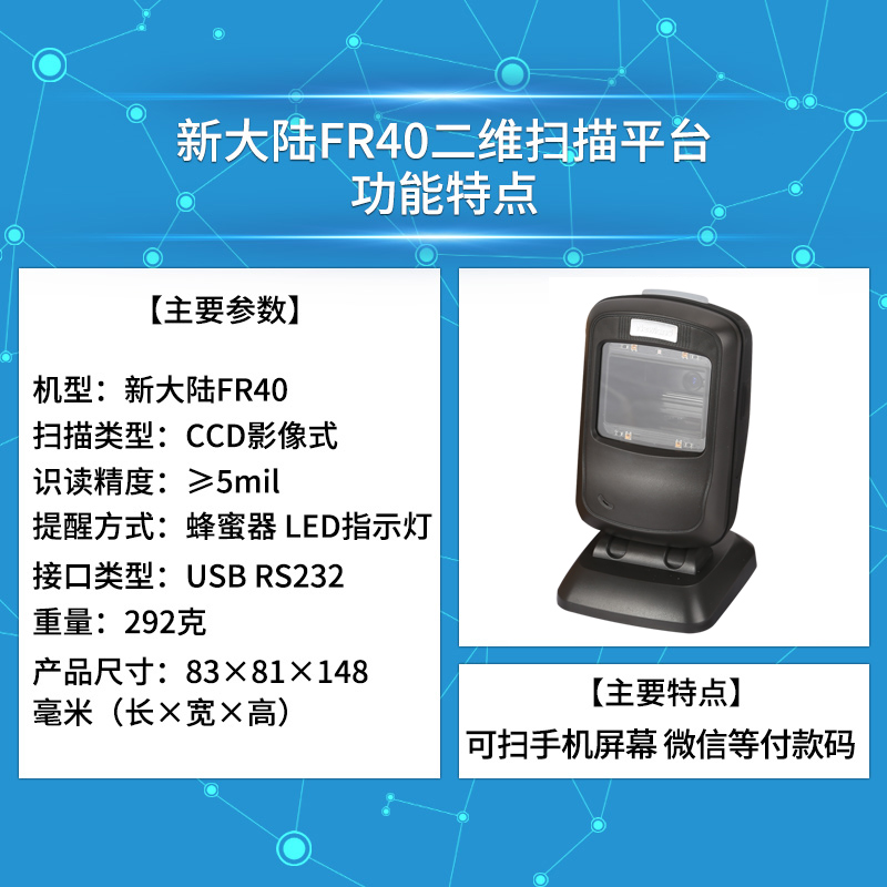 New World FR40 FR20 FR42 QR code scanning platform mobile payment scanning gun supermarket cashier scanning code gun scanning gun scanning code platform electronic medical insurance card payment box