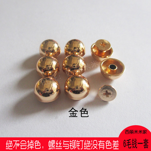Gold and silver gun bronze 12mm semicircular screws mushroom head rivets high-grade luggage car cushion decorative accessories