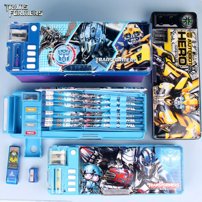 Transformers stationery box for primary school students multi-functional boys plastic pencil box for children boy cartoon Korean creativity