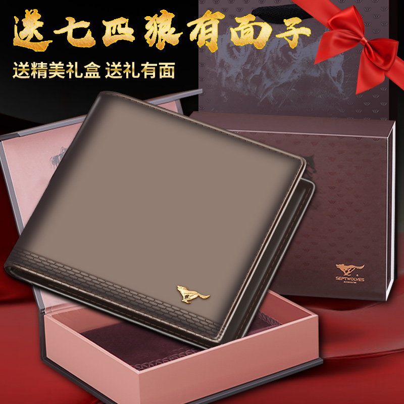 Seven Wolves Little Wallet Men's Wallet New 2023 Detonation Leather Clip Short Purpose Daddy Clip