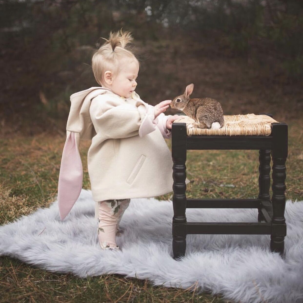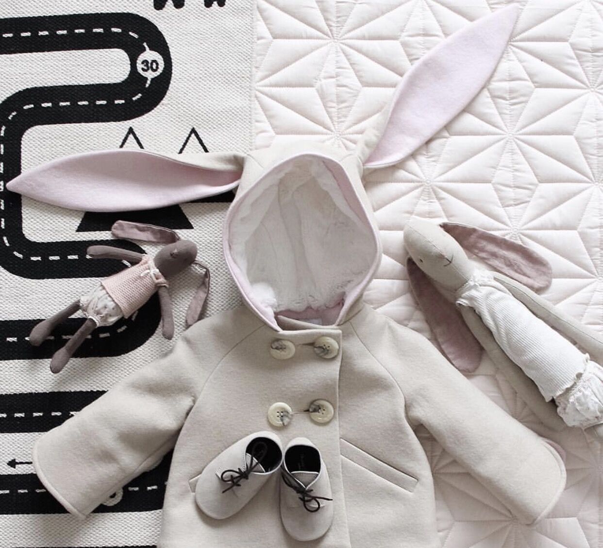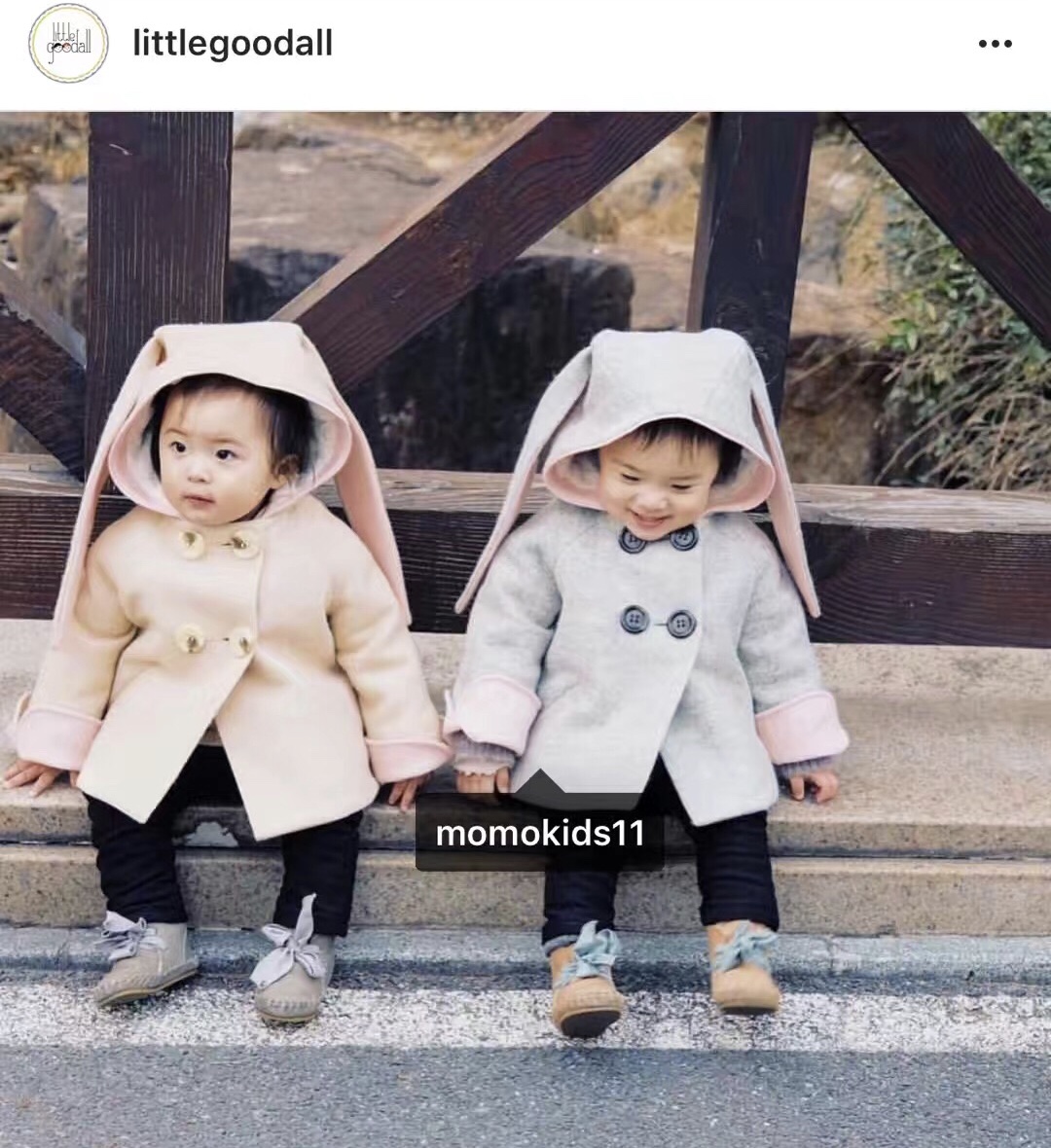 Milk dads Home spot littlegoodall new grey powder double-row buttoned rabbit coat dry cleaning 3Z