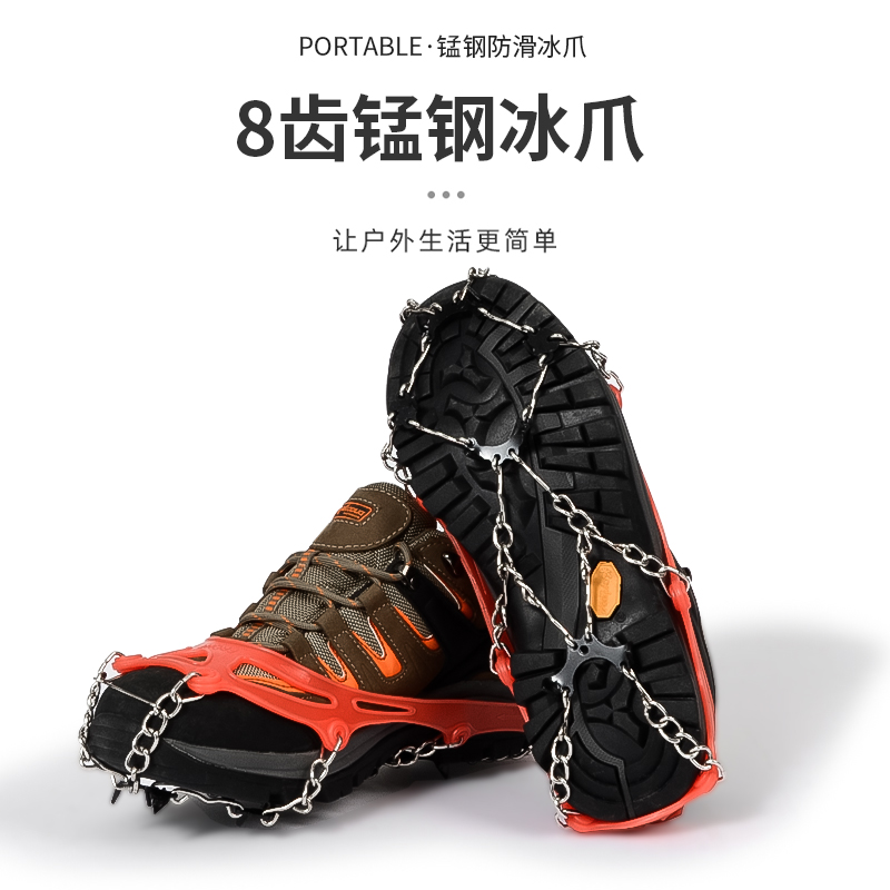 Outdoor snow eight-tooth non-slip shoe cover shoe chain 8-tooth reinforced crampons high-quality latex rainy day stone road delivery storage bag