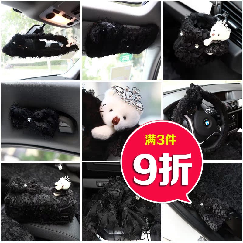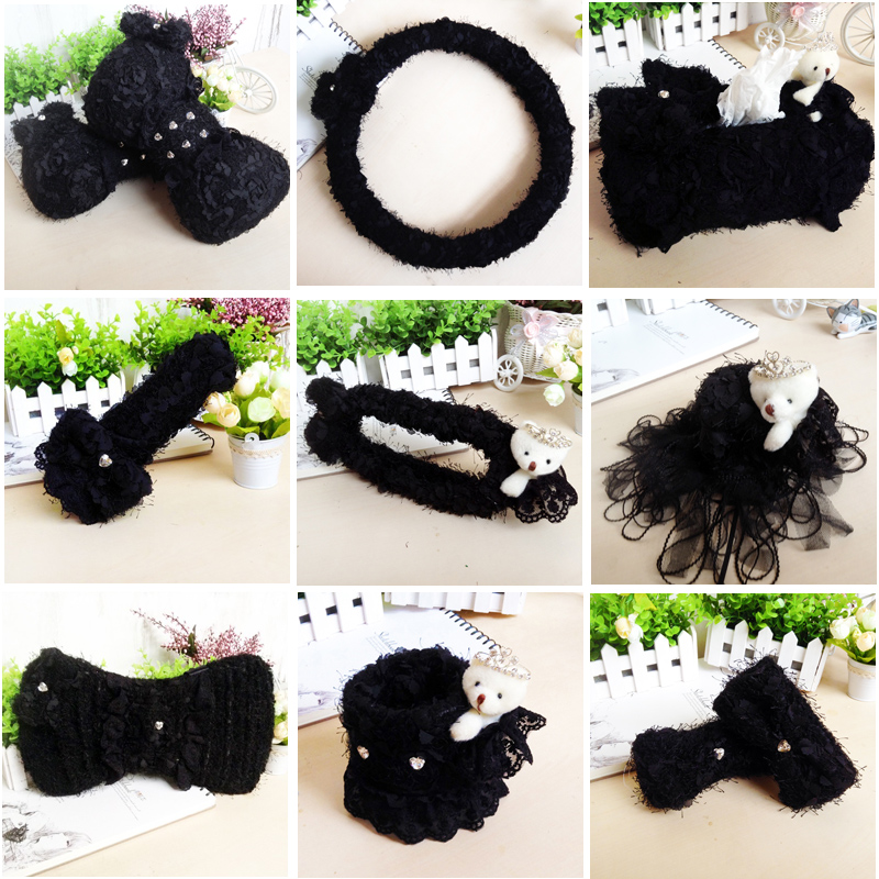 Rose Velvet Prince Car Interior Set Car Decoration Gear Rearview Mirror Handbrake Seat Belt Shoulder Cover Black