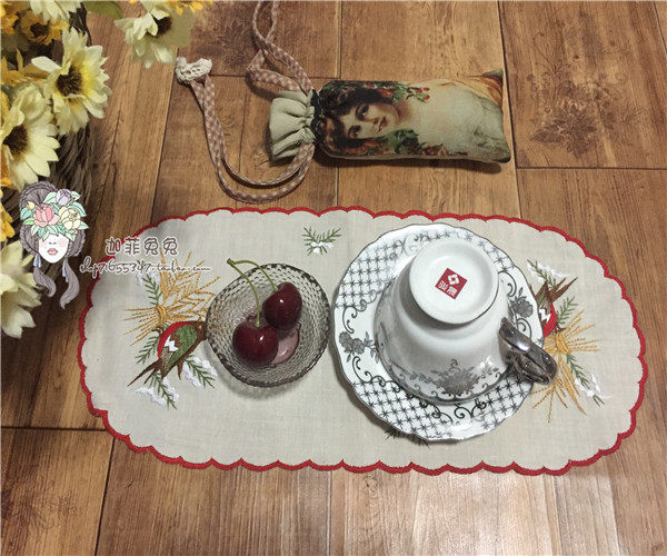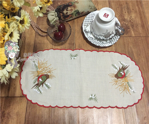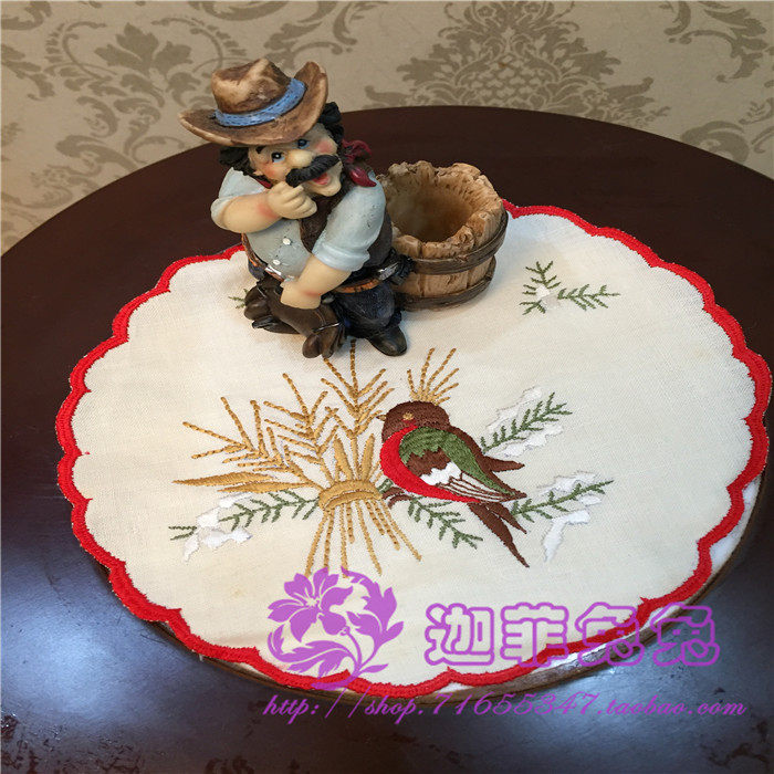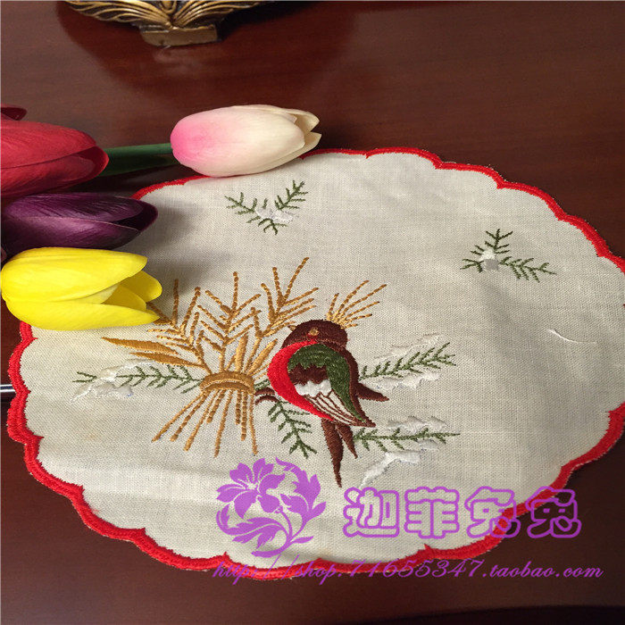On November New * Foreign Trade Original Single Bud Valley Bird Thu Cotton Cotton Linen Machine Embroidered Rim Machine Embroidered Cushion Disc Mat Vase Mat