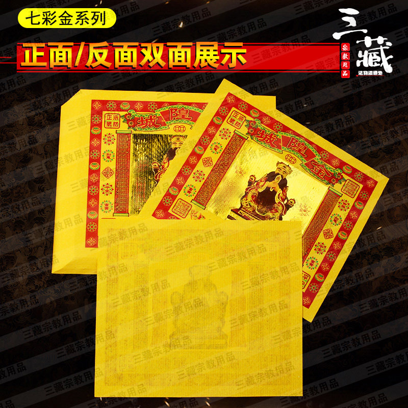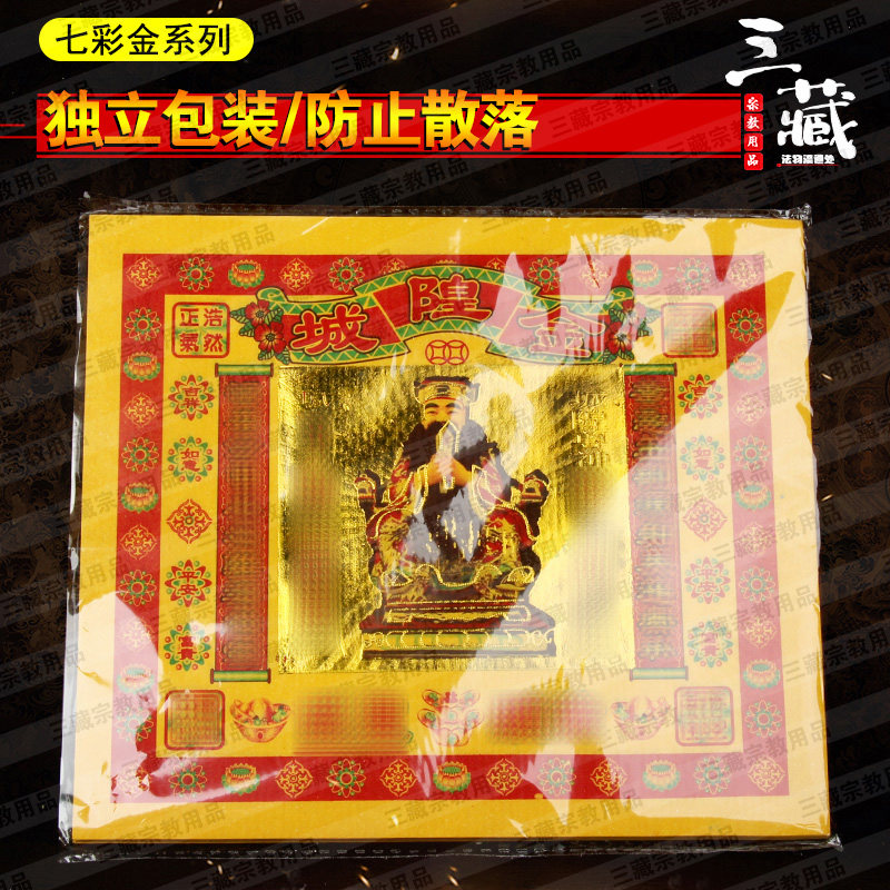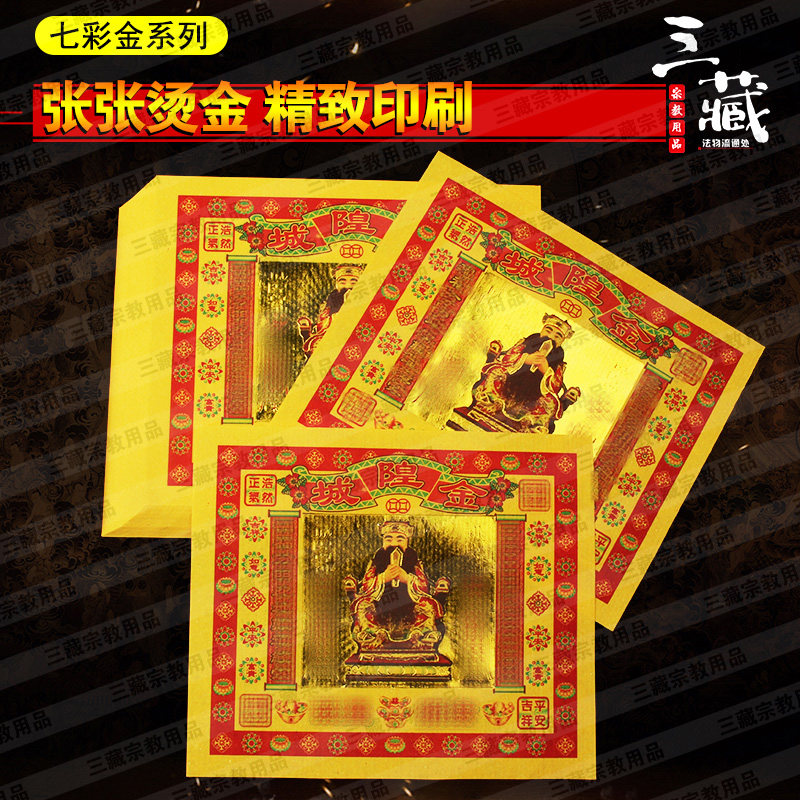 Chenghuang gold 60 packs Colorful gold gold foil paper Color printing yellow paper Burning paper Sacrificial paper money Sanzang Buddhist supplies