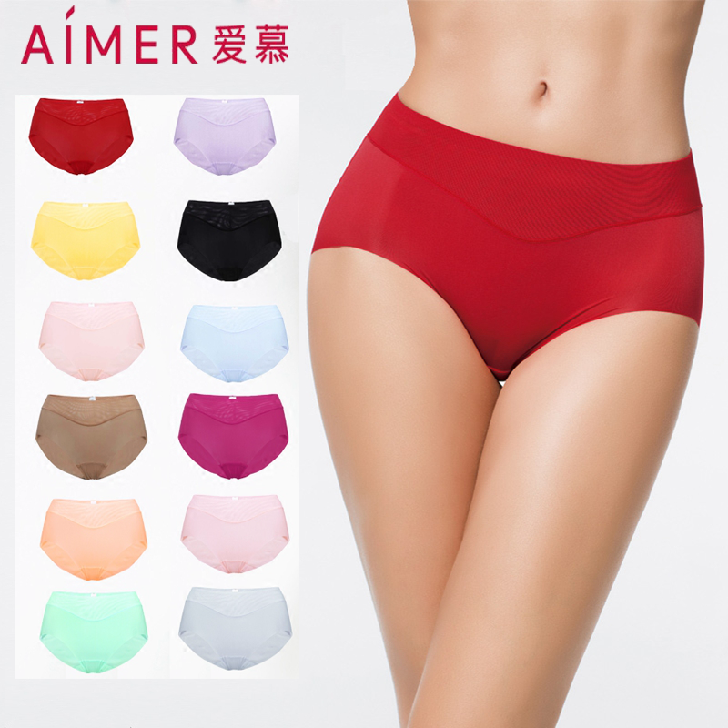 AIMER Official Kiki Pants Lady Mid-Waist-Free Silk Slip Red Summer Thin Triangle Briefs AM22100