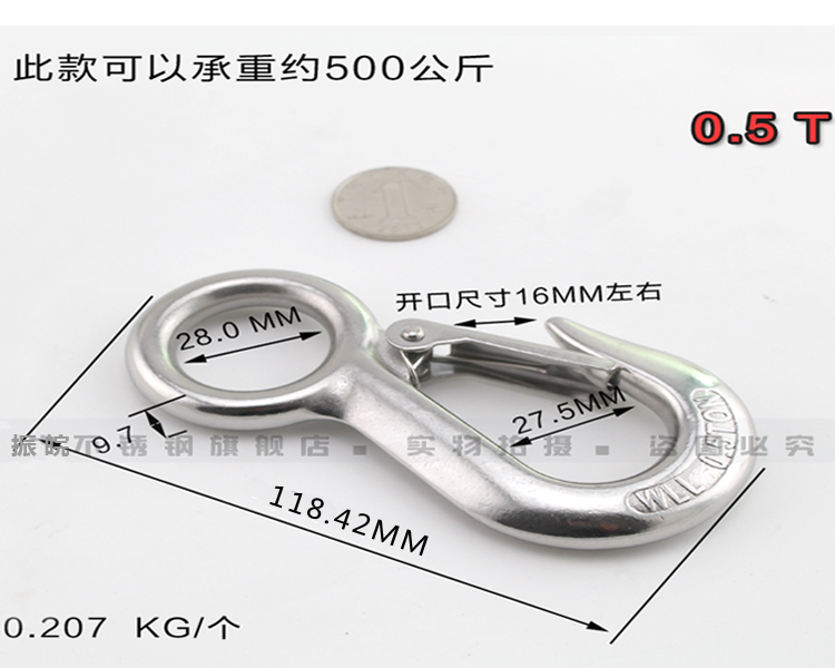 304 Stainless Steel American Cargo Hook Lifting Hook Large Eyestock Hook Hyacinth Hook Eye Ring Cargo Hook Anti-Drop Hook 0 2T-Taobao