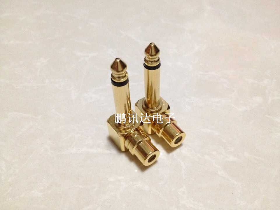 Full copper gilded 6 35MM revolution RCA lotus mother head AV transfer 6 5 right angle elbow mixer conversion plug