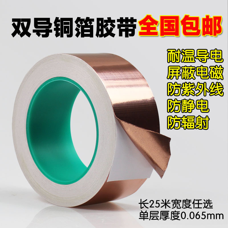 Double-conductive copper foil tape Double-sided conductive tape Pure copper self-adhesive tape Conductive tape shielding tape 20 meters