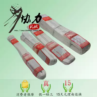 White flat polyester fiber lifting sling sling 2T3 tons 5 tons flexible wear-resistant double buckle crane cart lifting belt