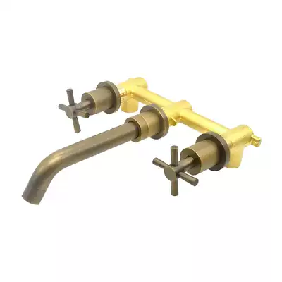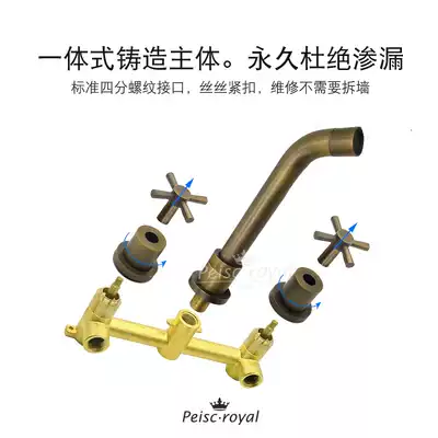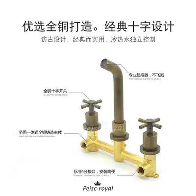 Shower room bathroom hand washing and face washing three holes all copper hot and cold concealed European style antique wall-in-wall basin faucet concealed