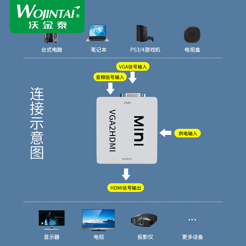 High-definition vga to hdmi interface connector converter with audio to computer connection TV cable projector - Taobao