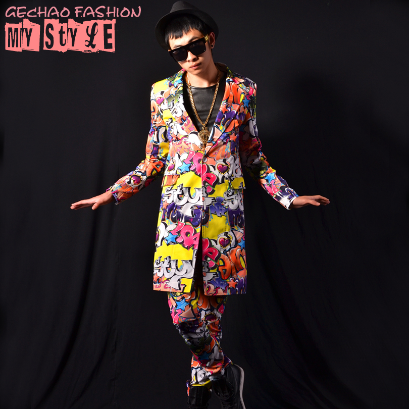 Exclusive ] Nightclub male singer DSDJ Right Zhilong GD graffiti hip hop long set bar performance clothing accessories