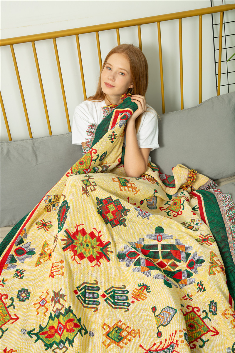 Foreign trade Bohemia Tibetan style sofa towel blanket cotton thick line carpet tapestry bed cover carpet tablecloth