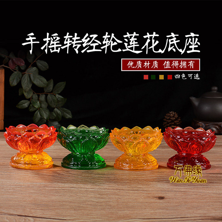 Hand-shake base socket Eight auspicious turn via wheel Buddha Lotus Flower lotus seat imitation glazed crystal resin yellow