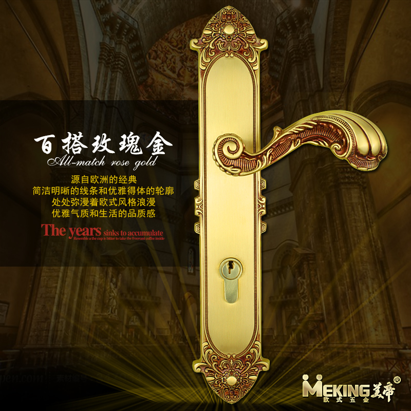 American Emperor European-style pure copper door lock Indoor bedroom villa solid wood double door folio anti-theft door lock all copper
