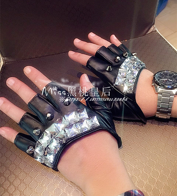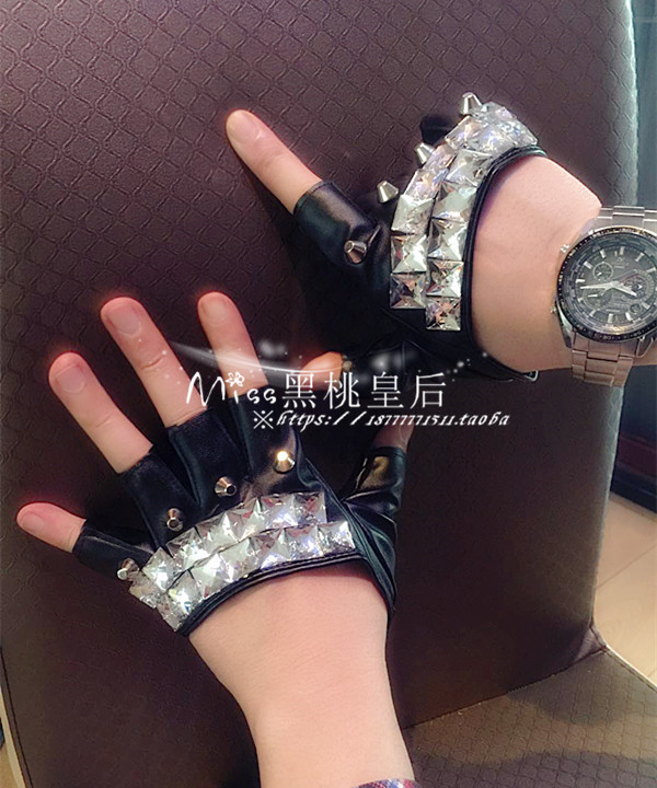 New hand sewn diamond rivet punk style half finger half palm performance gloves Performance gloves for men and women