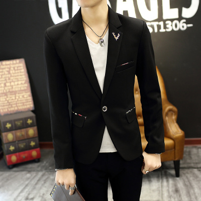 New spring hair stylist slim suit jacket men's Korean style jacket black casual small suit tide send bow tie