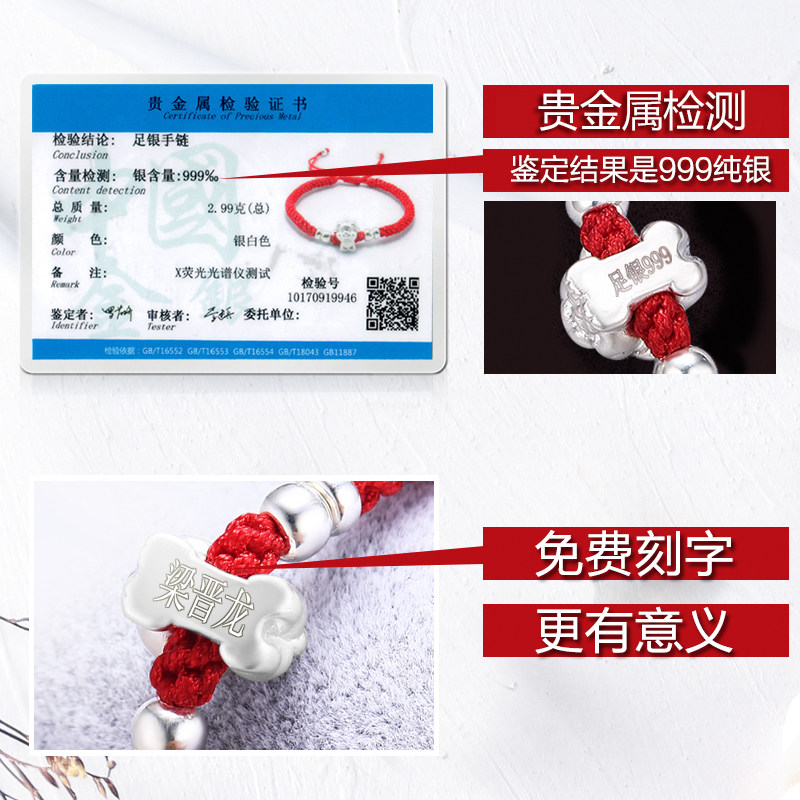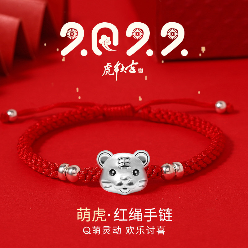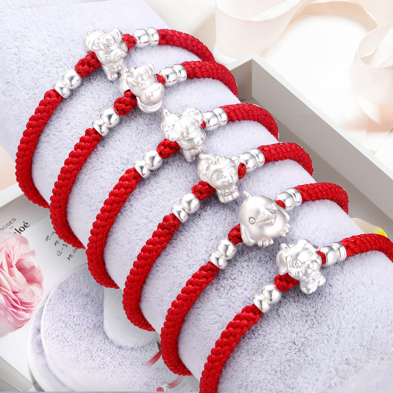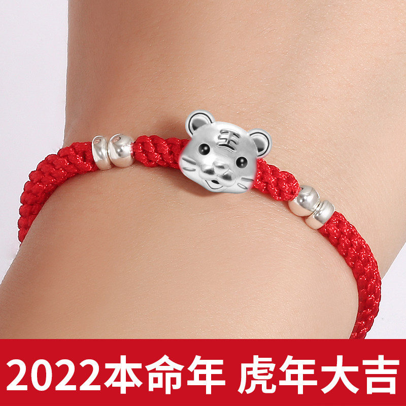 Pure Silver Zodiac Zodiac Transfer Beads of the Year Female Chinese Tiger Red Rope Handmade Tiger Year Couples Hands Rope Male Children's Gifts