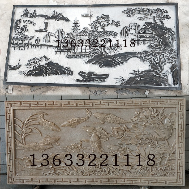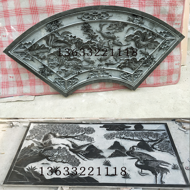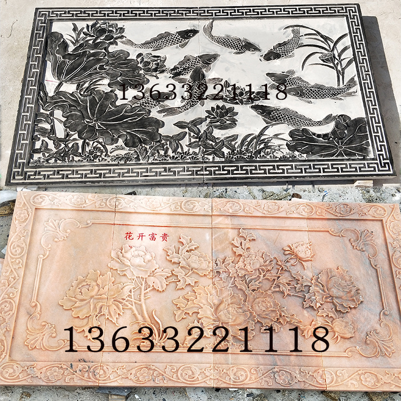 Stone sculptures year after year with fish frescoes reliving Xuanguanho Flowering Photos Wall Green Stone Head Treading Screen Decoration Fu Characters Greet Visitors Pine