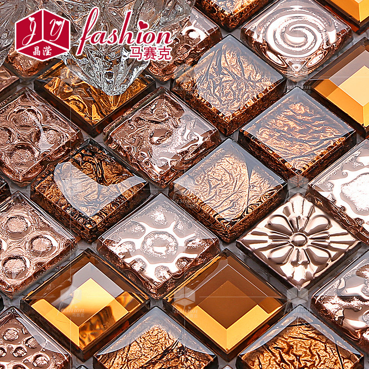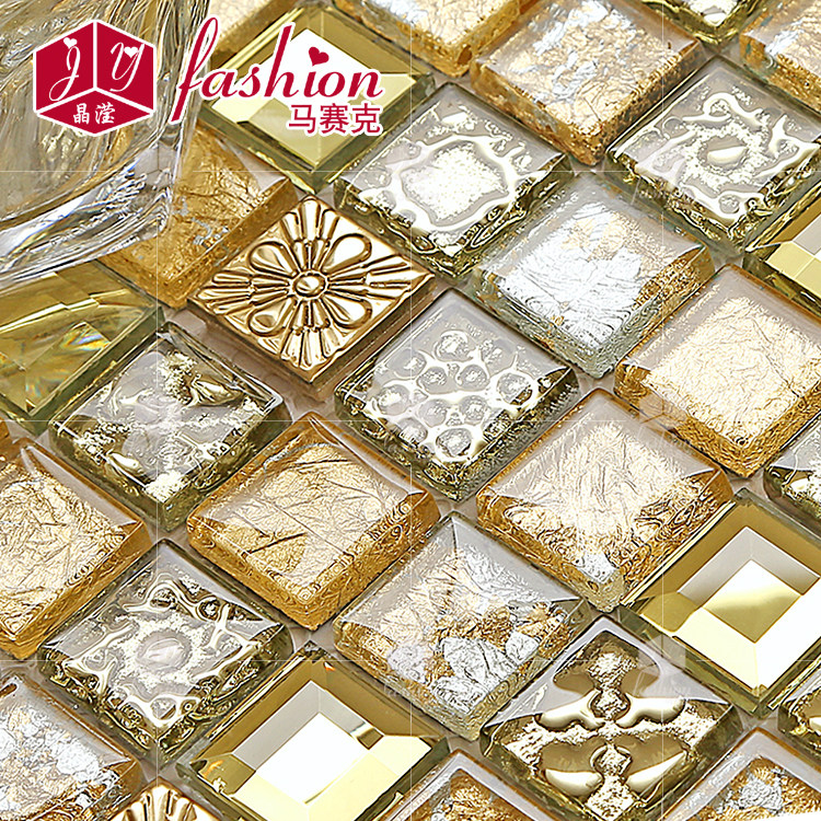 Gold Crystal Gold Foil Edged Mirror Mosaic Metal European TV Background Wall Tile Living Room Modern