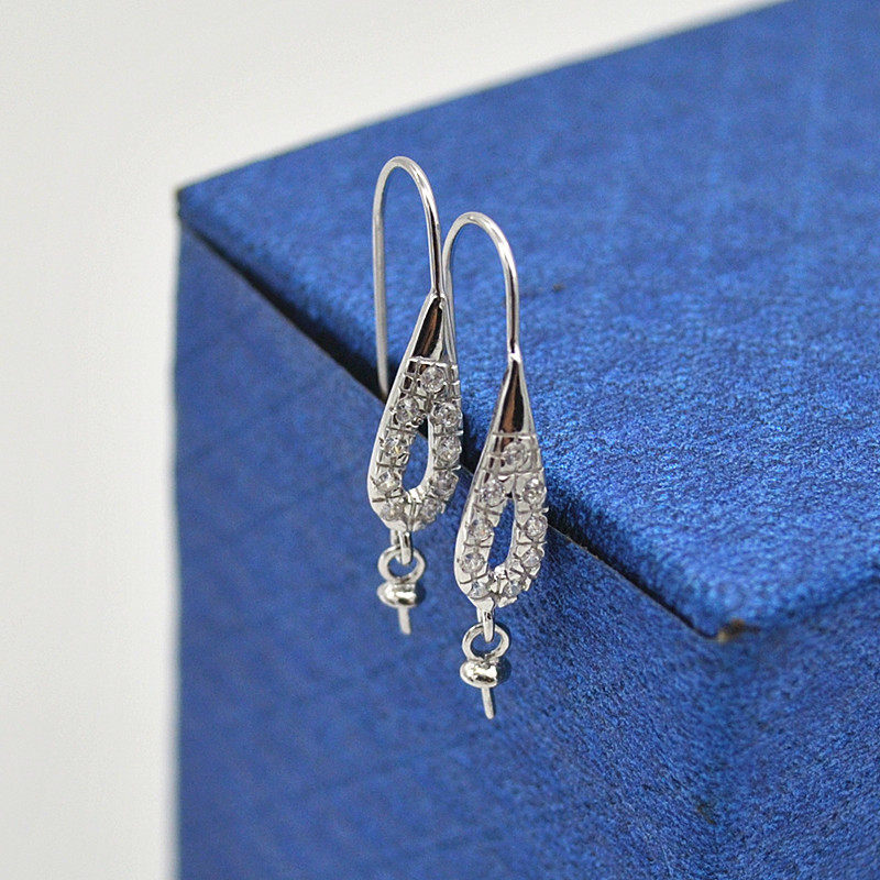 925 sterling silver DIY silver accessories Micro-inlaid ear hook Thick sticky pearl long ear clip buckle Homemade material hypoallergenic
