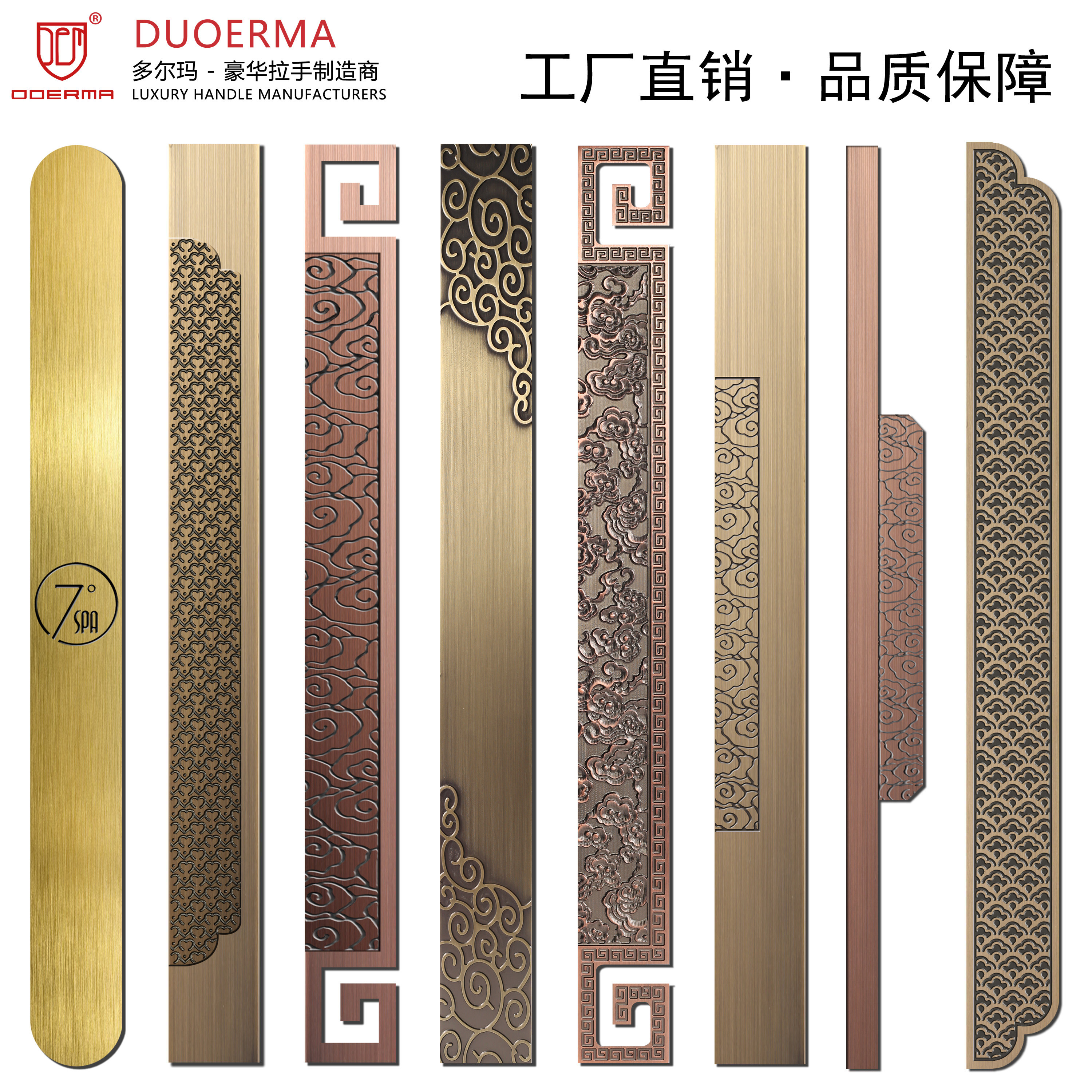 Chinese engraved logo glass door handle hotel meeting room solid wood door black minimalist copper door handle