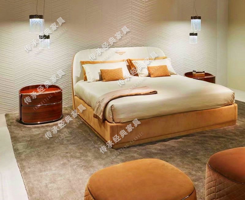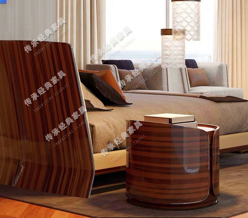 Post-Italian postmodern Bentley Family custom furniture tree durwood leather Piano Lacquer Bed Head Cabinet Mansion Villa Innate