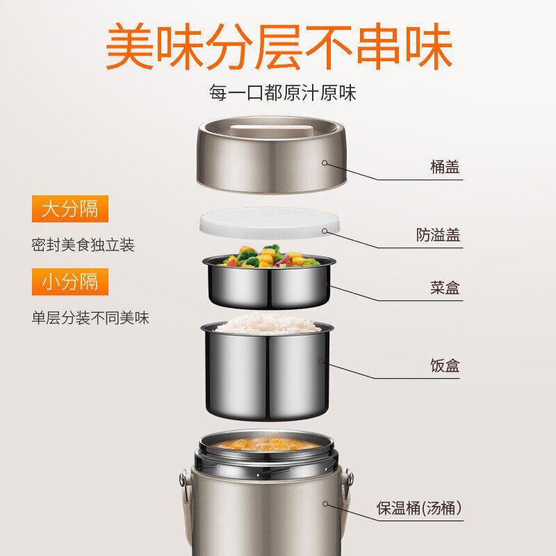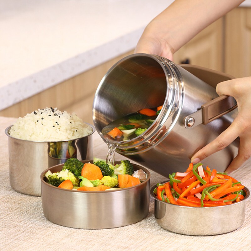 Supoir vacuum insulated lunch box 3 layers of long-lasting insulated casks 304 stainless steel rice pail boxed lunchbox
