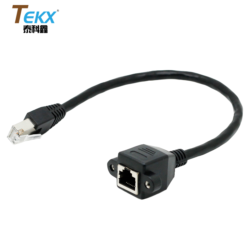 Type 6 gigabit network port RJ45 extension cable 1000M six types of RJ45 network port male-to-female network cable male-female head RJ45 male-to-female computer TV network signal extension cable with fixing screw holes