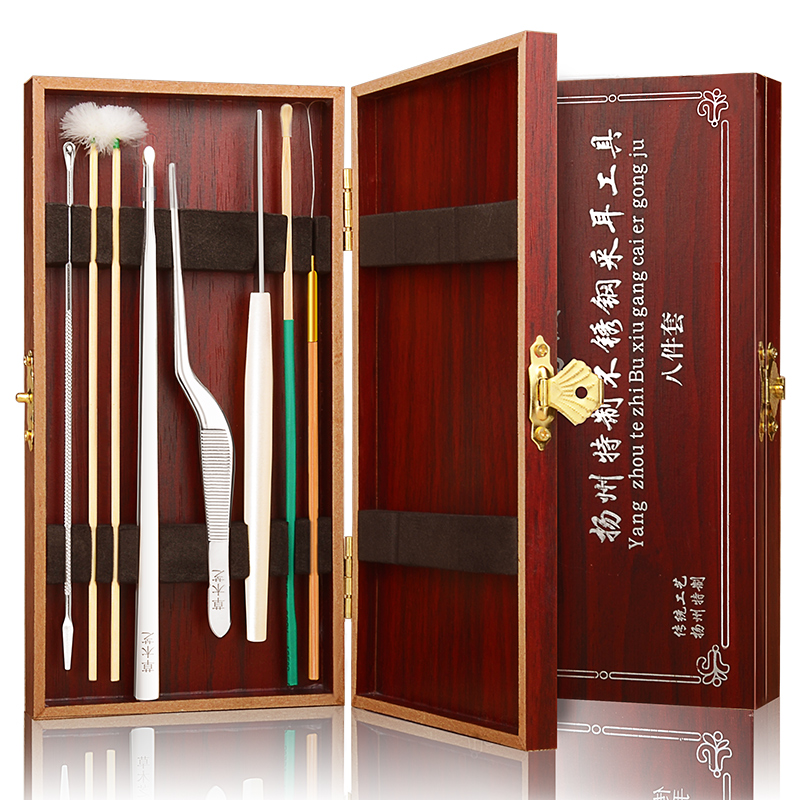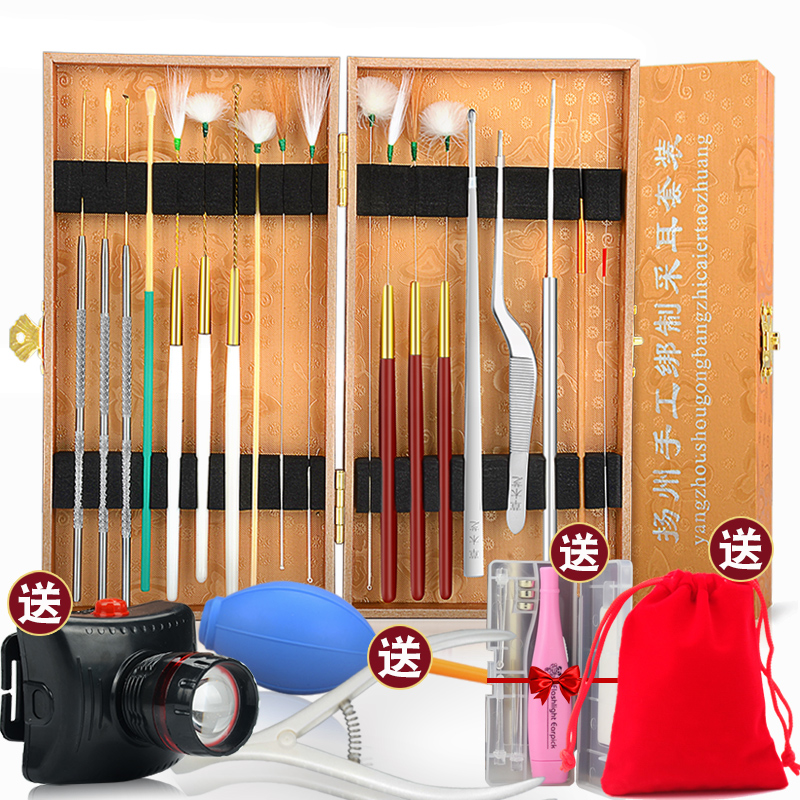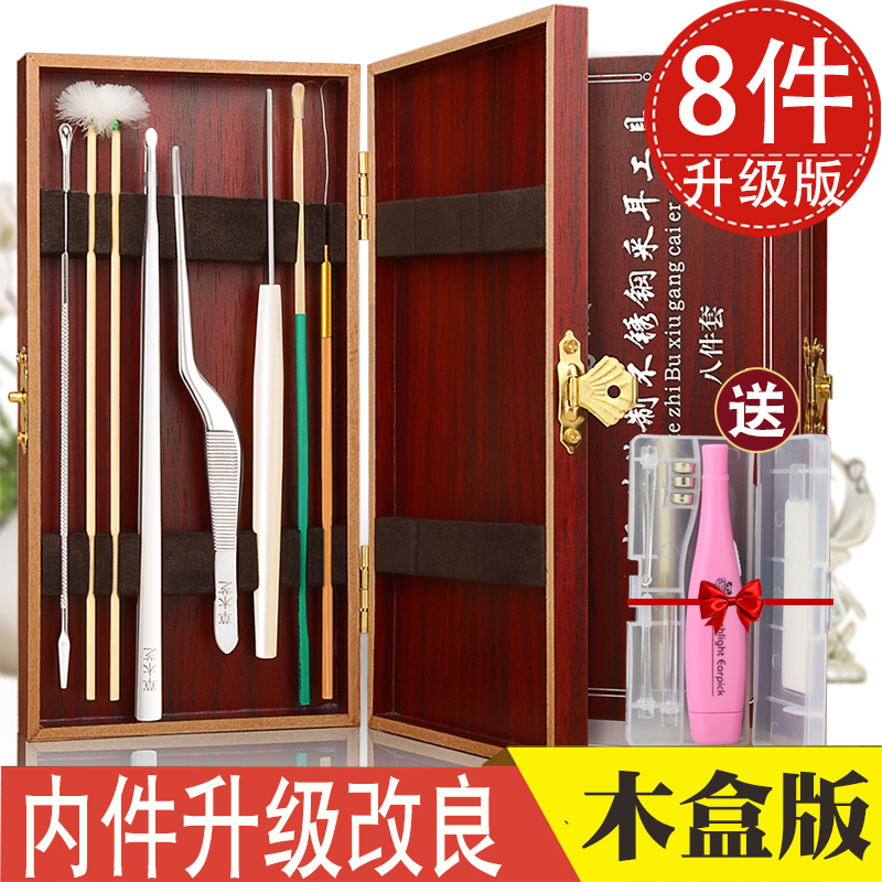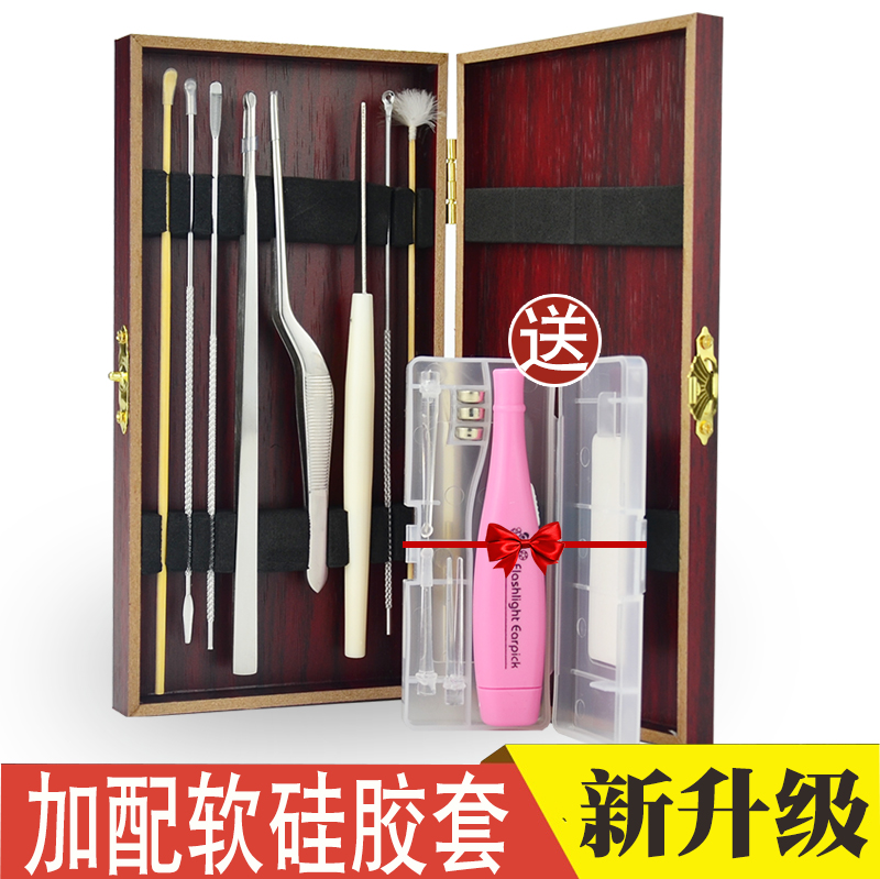 Eight-piece headlamp ear extender luminous ear spoon ear picking 19-piece set of luminous ear spoon New eight-piece set of luminous ear spoon New eight-piece set (headlamp) soft head ear spoon Nouveau Riche gold 19-piece set of hair